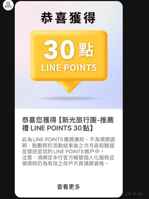 推薦首位親友完成綁定可享30點LINE POINTS;