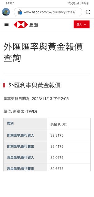 → BabyWolf: 一角 沒像匯豐這樣 剛看確定匯豐除了實際賣出高於牌告 11/14 13:01