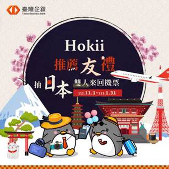 標題[情報]臺灣企銀Hokii數位帳戶抽日本雙人來回機票