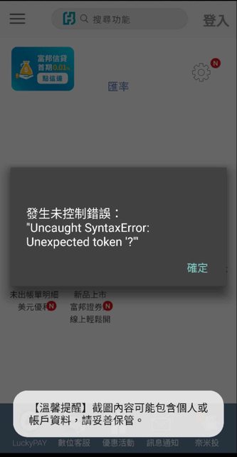 標題[問題] 我的富邦行動銀行出現發生未控制錯誤無法