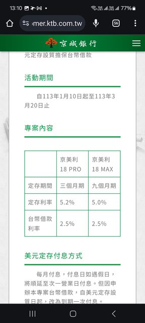 標題Re: [閒聊] 京城美元利息再定存,用台幣拉高餘額