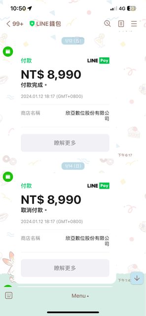→ bemaz: 可以即時恢復額度,但linepay 幾次取消都要等幾天,(實體 01/18 12:19