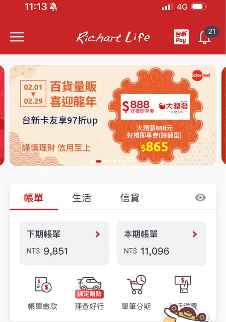 綁定後資訊就直接顯示(如果你的台新卡剛好有停車權益的話)