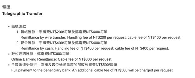 → alex1973: 匯入匯款手續費:400元/筆 02/19 16:42