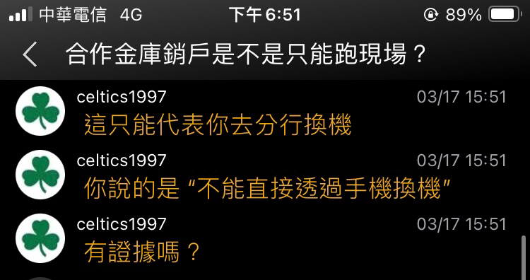 → celtics1997: 我說的是 合作金庫換機可以透過手機 03/17 18:16