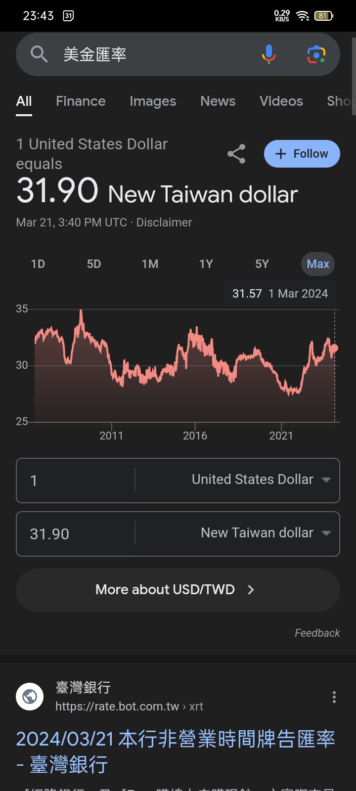 → DFIGHT: 漲到30以上 舉例來說31元買台幣 這樣就用28元變成31元 賺 03/21 23:47