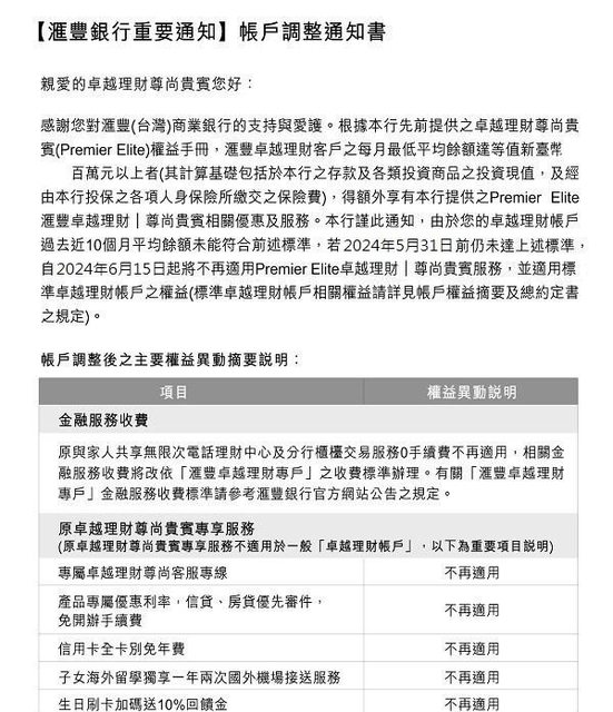 → TZUYIC: 這樣看來HSBC還滿有誠意,Premier Elite沒有直接降成一般 04/25 16:19