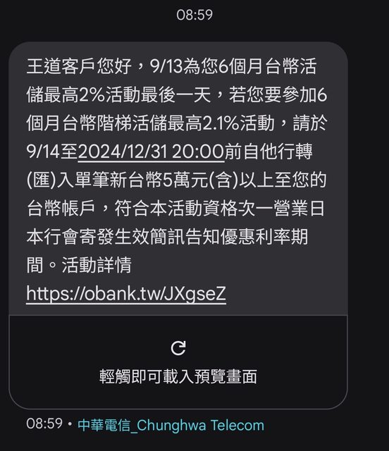 → TZUYIC: 就開始新一輪的優惠利率,但因為16號才收到簡訊所以16號才09/13 16:16
