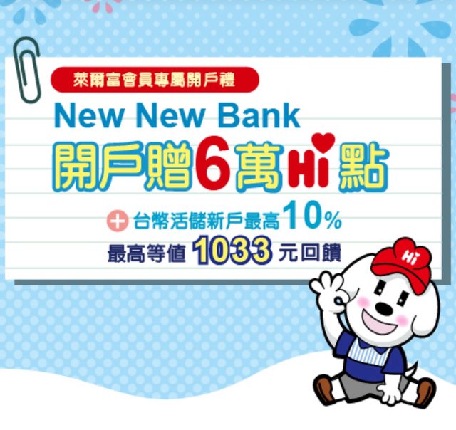 標題[情報] 指定連結開戶NewNewBank贈萊爾富6萬Hi點