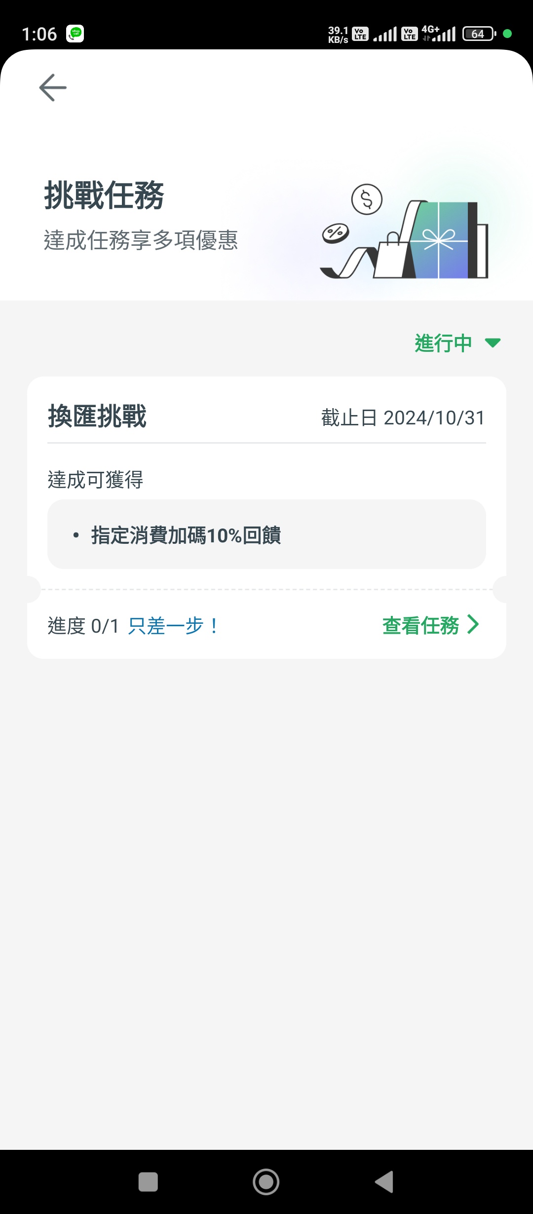 → eupa1973: ,任務牆也只有換匯任務,看來是沒有轉帳優惠了 10/06 13:06