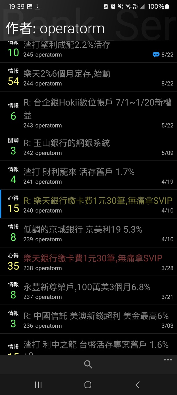 operatorm: 3500萬全壓台積,已賺1500萬,搞銀行vip,搞那點福利只是 10/26 17:52
