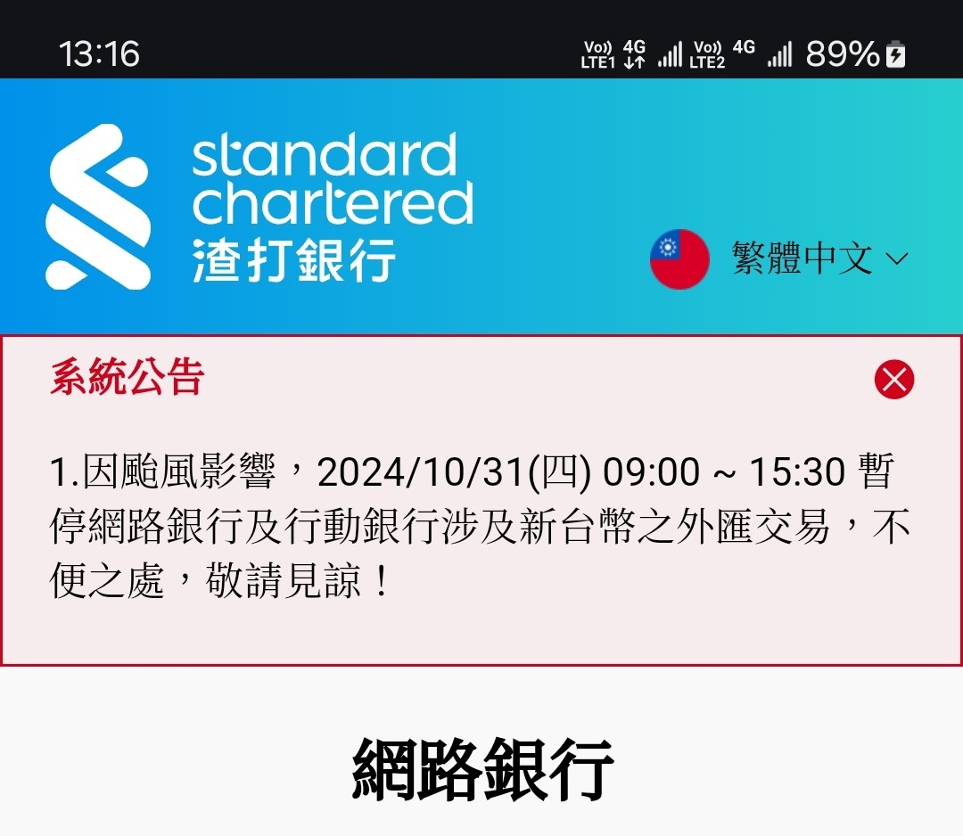 → Halfocean: 渣打網頁有公告解決辦法 10/31 16:51