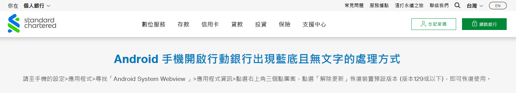 推 PopeVic: 渣打真的是… 不維護自家 app 要使用者降版 webview 是 10/31 17:38