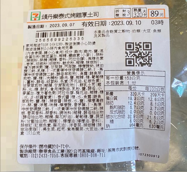 【商品名稱/價格】:頌丹樂泰式烤雞厚吐司$89(i珍食$58) 【便利商店/廠商名稱】:7-11 【規格/內容物/熱量】: https://i.imgur.com/eN85dJT.jpg