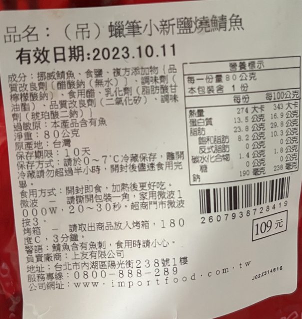 【商品名稱/價格】:蠟筆小新鹽燒鯖魚/原價109元,友善71元