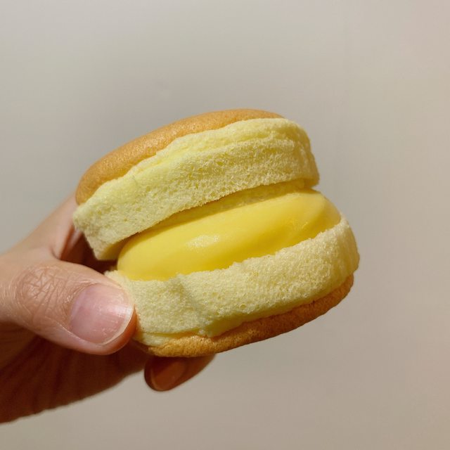檸檬內餡是看起來是外側看起來固體的,但其實是軟綿的口感。檸檬味道跟全家自己的檸