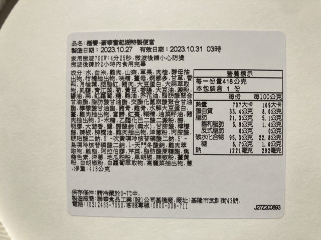 豪華奮起湖特製便當:418公克/水、白米、雞肉、豬肉/707大卡