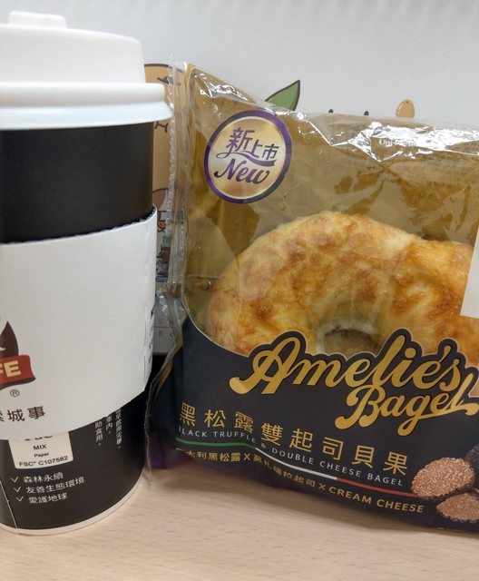 標題[商品] 7-11 黑松露雙起司貝果/厚乳拿鐵