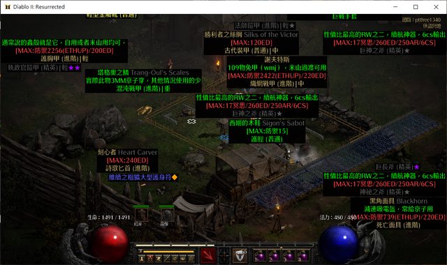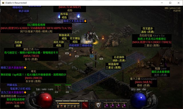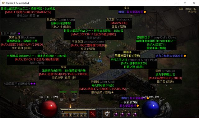 、雙抗手套、+3技能項鍊、幾個3洞甲、奇拉1個、低素質蛇皮、死靈好用的凱恩