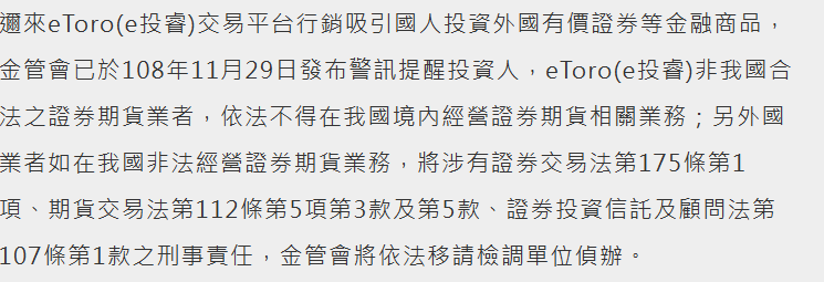 → john371911: 能像外國cex一樣用etoro. 我覺得也檢舉之前台東拍賣密 01/20 19:21