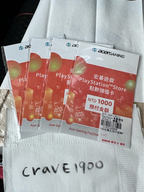 標題[PS5 ] 售 PSN點數卡 1000點x4 86折
