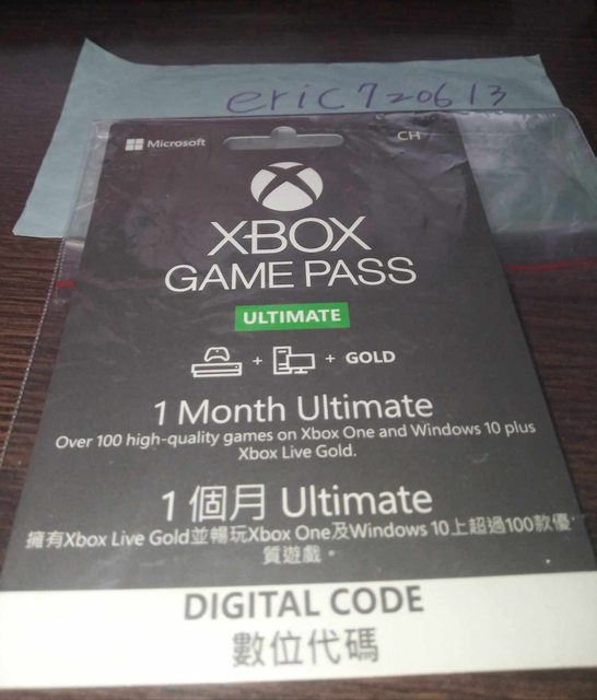 【物品名稱】:1.Xbox Game Pass Ultimate 1個月數位序號(暫售)