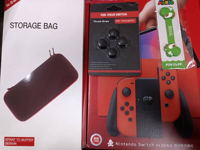 ★【物品名稱】:Switch oled馬力歐紅+收納包+搖桿帽