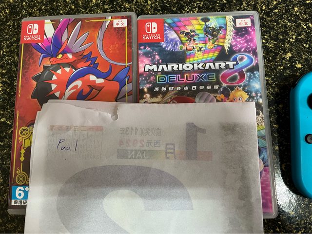 【附 註】:實體版遊戲:瑪麗歐賽車,寶可夢朱,數位版遊戲:寶可夢阿爾宙斯,
