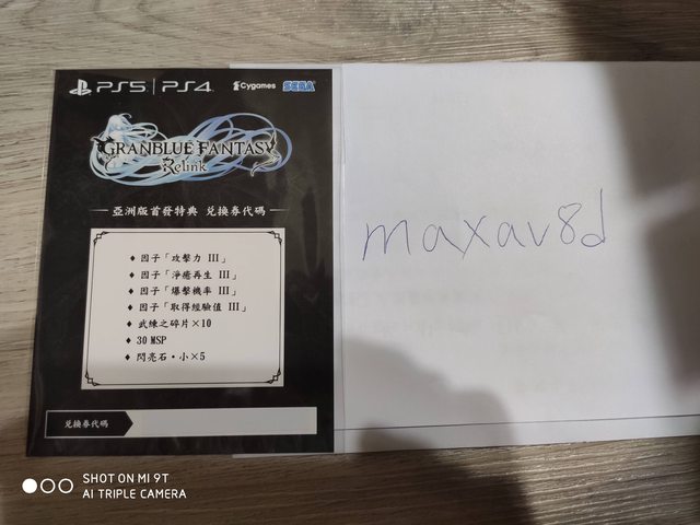 ★【物品名稱】:售 碧藍幻想 relink 特典序號