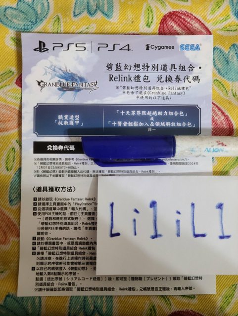 ★【物品名稱】:碧藍幻想Relink GBF特別序號