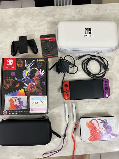 ★【物品名稱】:Switch Oled 朱紫特仕機 。含保護殼、旅行包,蘑菇頭保護貼 (暫售