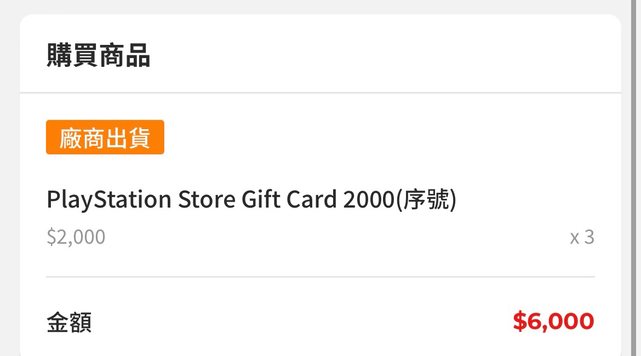 ★【物品名稱】:PSN 2000點*3