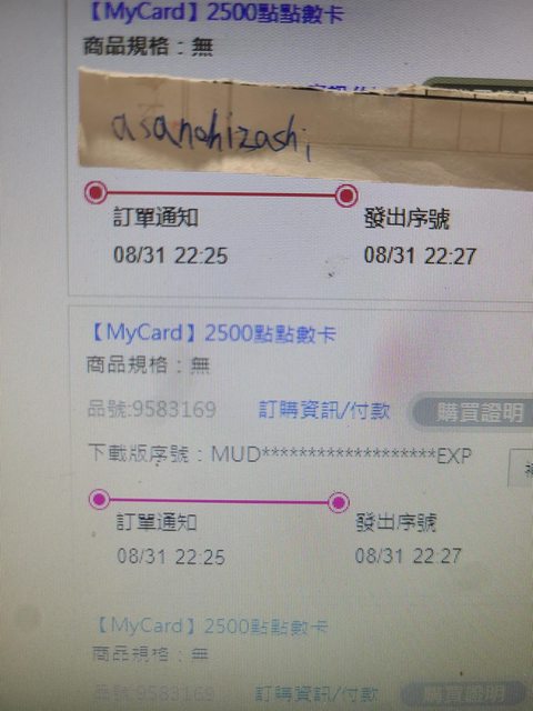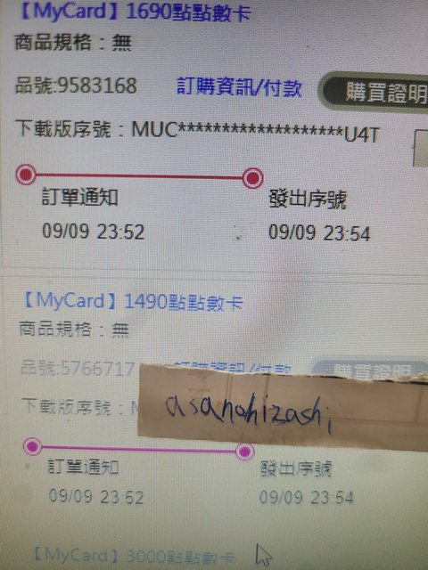 標題[PC ] 售 MYCARD點數 3000 2500 1690 1490 89