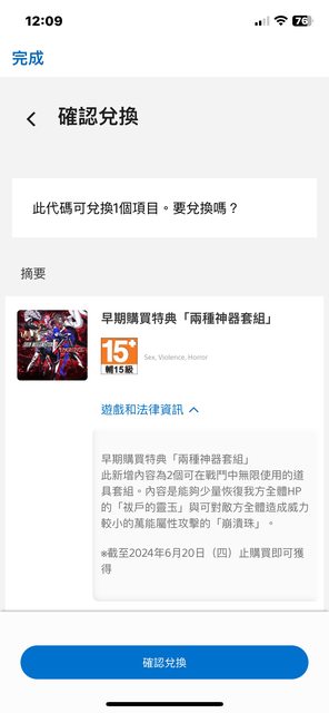 1.真女神特典未兌換