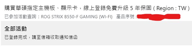 有登錄華碩5年保固,購買自新竹原價屋,2020-07-16