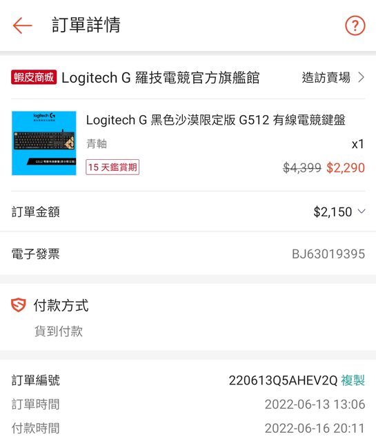 [1;33m◎硬體型號:羅技G512鍵盤 青軸 (黑沙版) [m