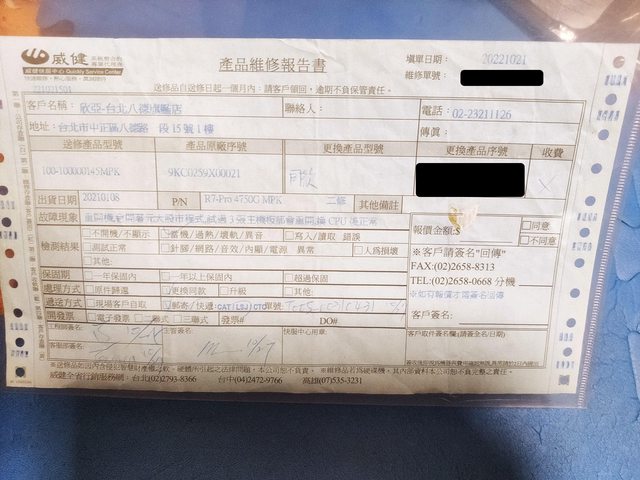 因為是用公司名義購買不能上電蝦抱怨怕損公司名譽,又要重複測試