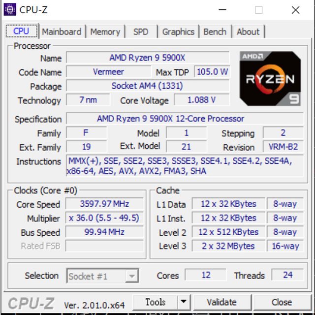 ◎硬體型號: AMD Ryzen 5900X (b2)