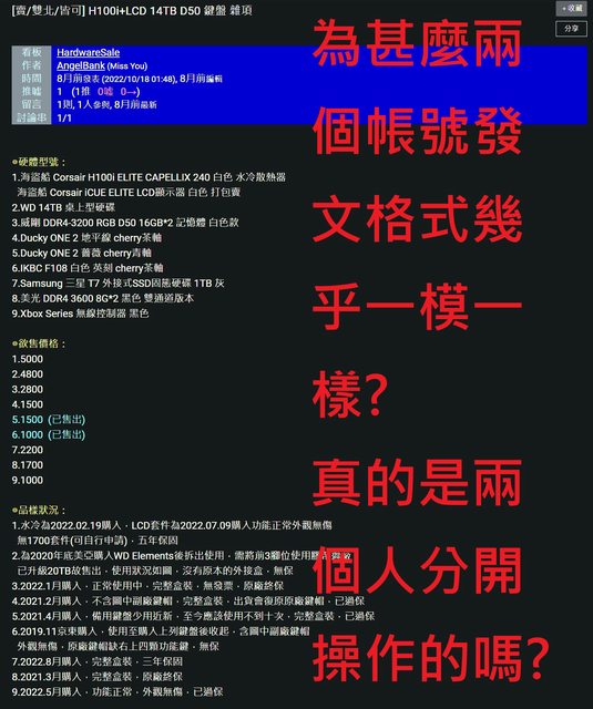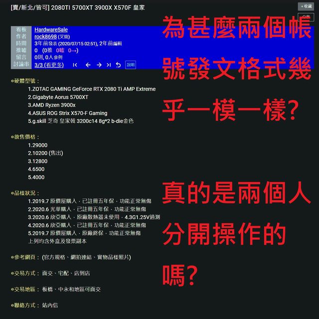 自從2019年2月左右這兩個帳號長期在電蝦與硬體交易版發文回文,具有相當專業回文