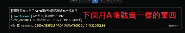 根據R版友在超頻版回文使用2600+華擎B350M主機板+美光AT3000記憶體