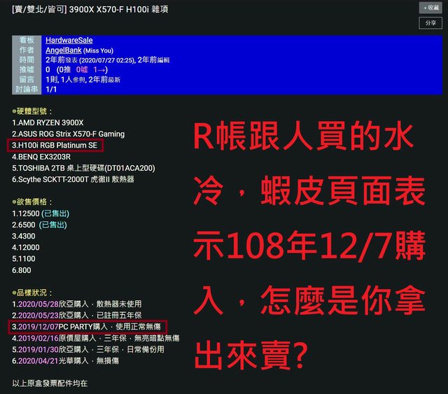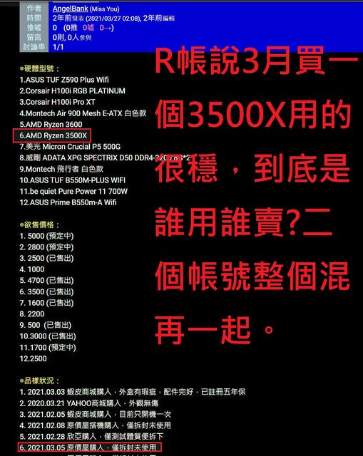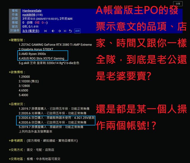 兩個帳號PO文所賣的零件都跟另一方完全沒有任何關係!?