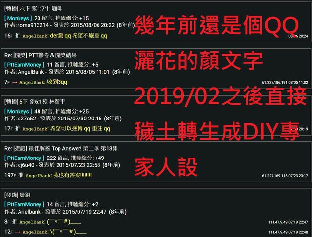 況且A帳號自從7年前最後一篇文後,人設從QQ.XD大量表情符號使用的撒花人士