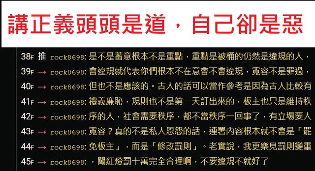 並且在之前發文的內容對於違反規定的人有強烈的正義感
