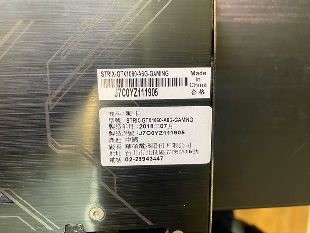 標題[賣/新北桃園/面交] ASUS ROG Strix GTX1060 6G