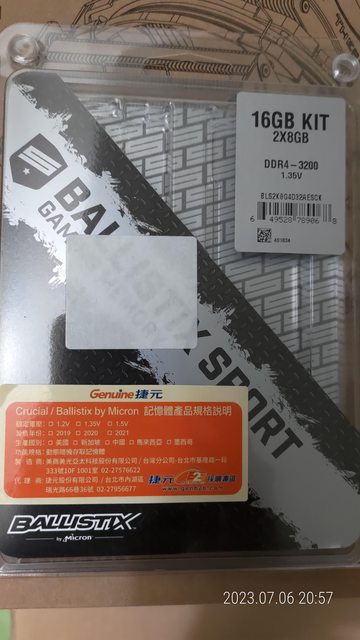 標題[賣/全國/郵寄]美光Ballistix 3200/16G(8G*2)白