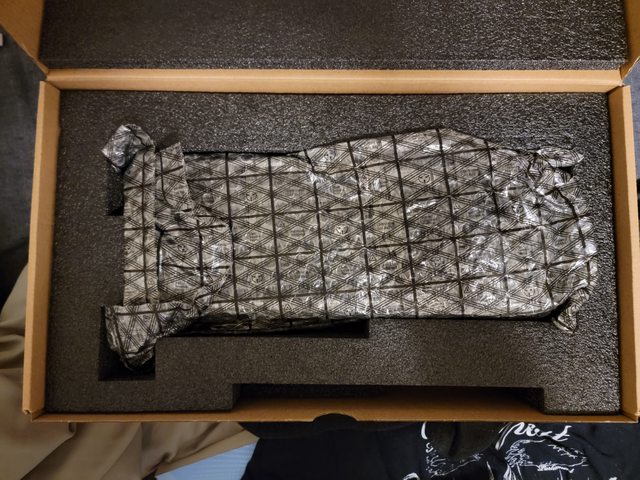 盒裝缺少訊號輸出的防塵塞、金手指保護套、控制燈光的ARGB線