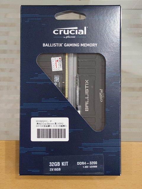 1.美光 Crucial Ballistix DDR4 3200 32G (16G*2) 黑