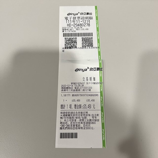 ◎硬體型號: AMD RX 7900 XTX 公版卡 撼訊保固三年