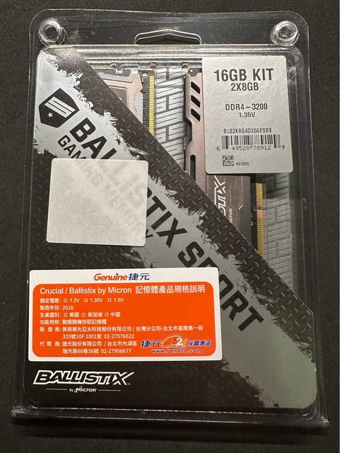 標題[賣/台北/皆可] 美光 Ballistix DDR4 3200 8g*2