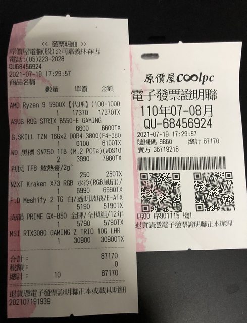標題[賣/嘉義/皆可] 半套AMD5900X/ROG B550-E/芝奇DD
